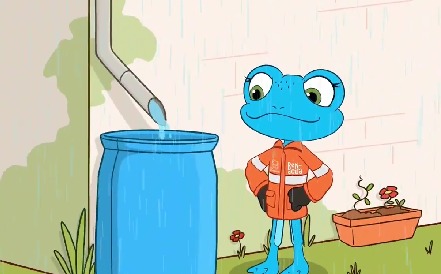 Ahorra agua cerrando la llave al cepillarte, duchándote rápido y . y reutiliza el agua cuando puedas. Cada gota cuenta para cuidar el planeta. ¡No la desperdicies! un mensaje Renacer Audiovisual